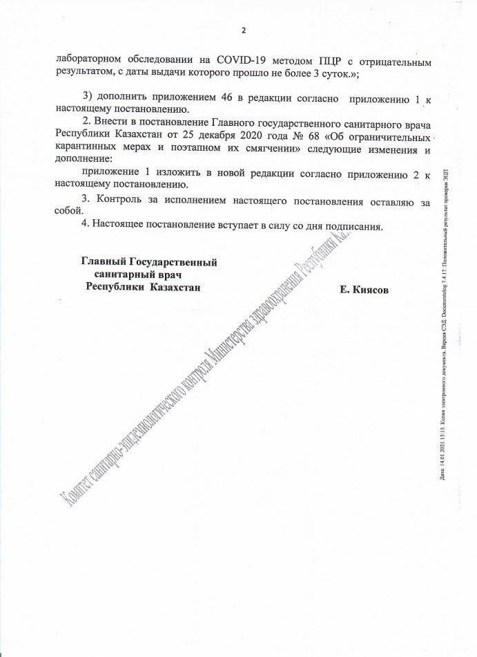06 қыркүйек 2021 0 1 2 3 4 5 Постановление главного санитарного врача №2 от 14.01.2021 рус Осы беттің QR-коды:QR-код этой страницы: