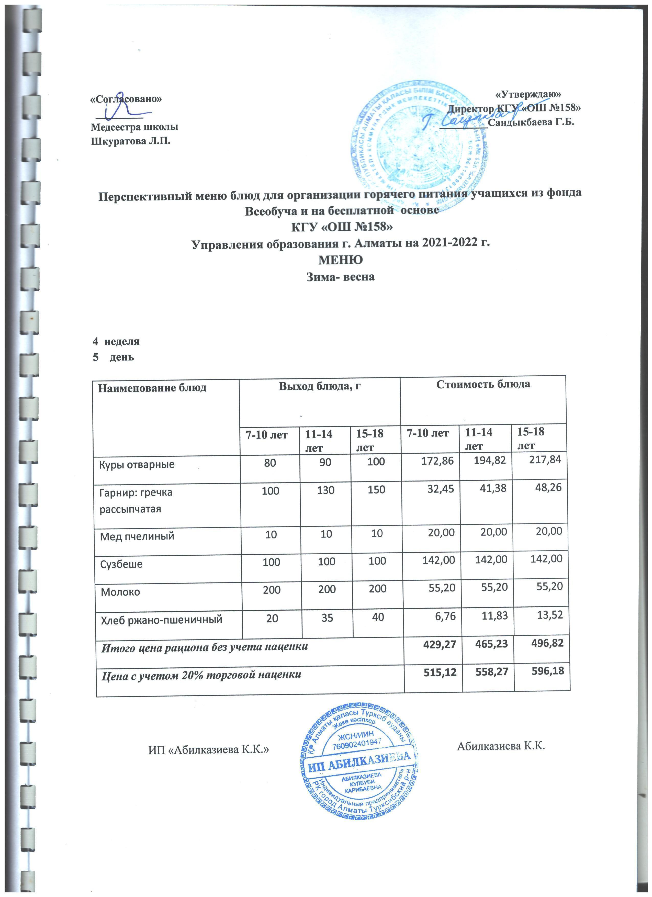 Меню лето-осень на 2021-2022 учебный год (4 неделя)