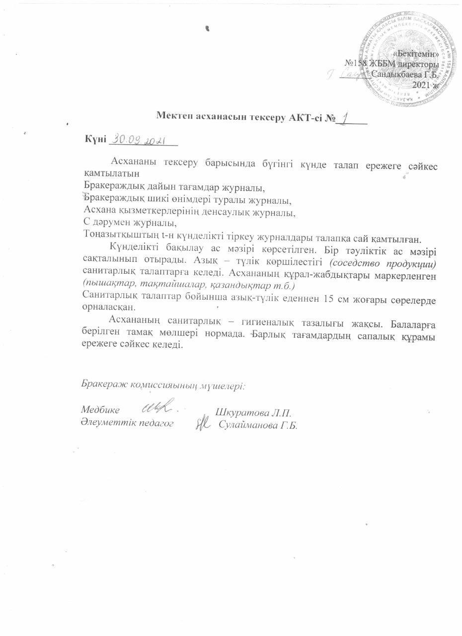 30 қыркүйек 2021 0 1 2 3 4 5 Акт №1 проверки школьной столовой от 30.09.2021 г. Осы беттің QR-коды:QR-код этой страницы: