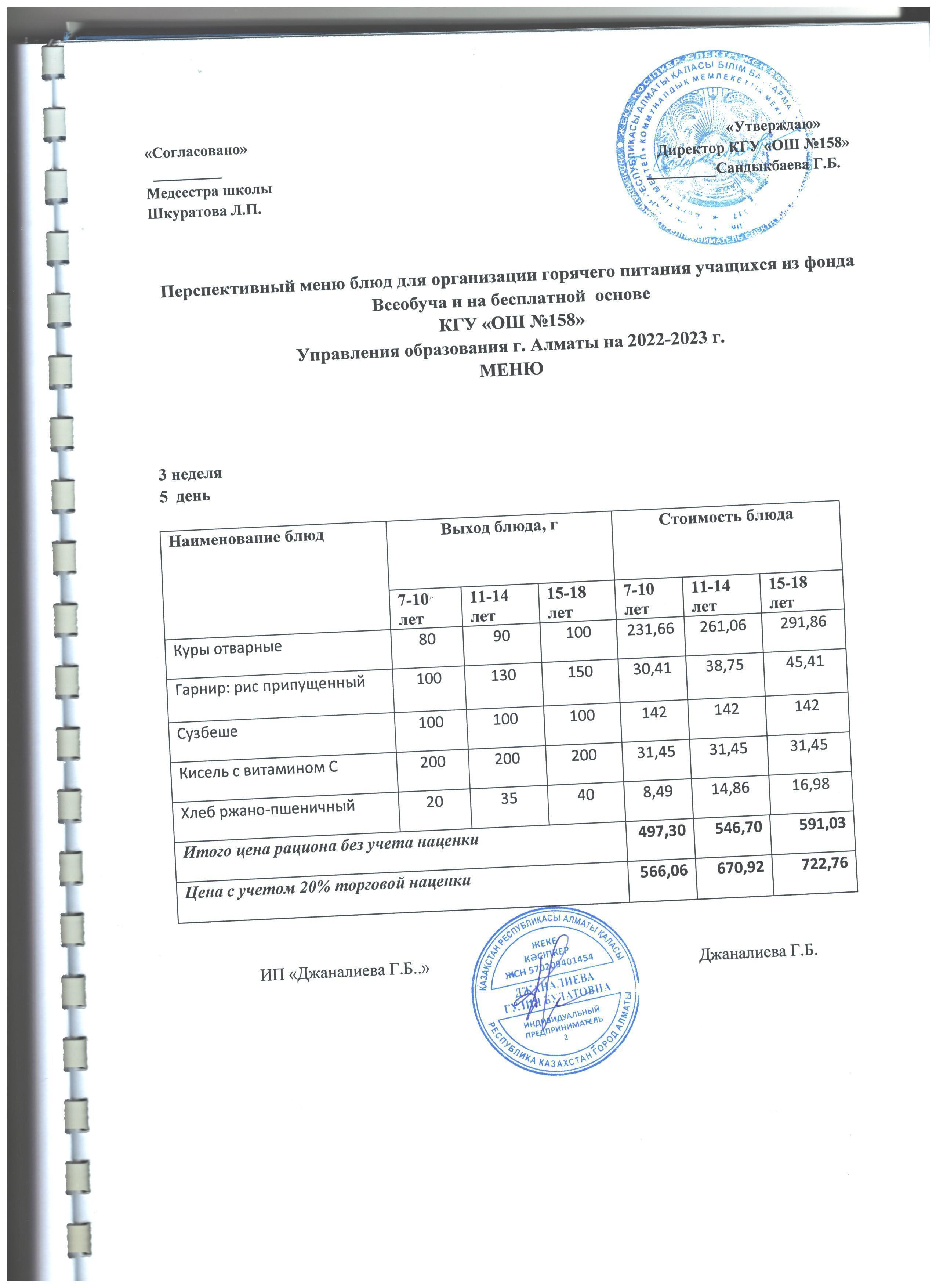 Ас мәзірі 2 апта 5 күн (09.09.2022ж.)