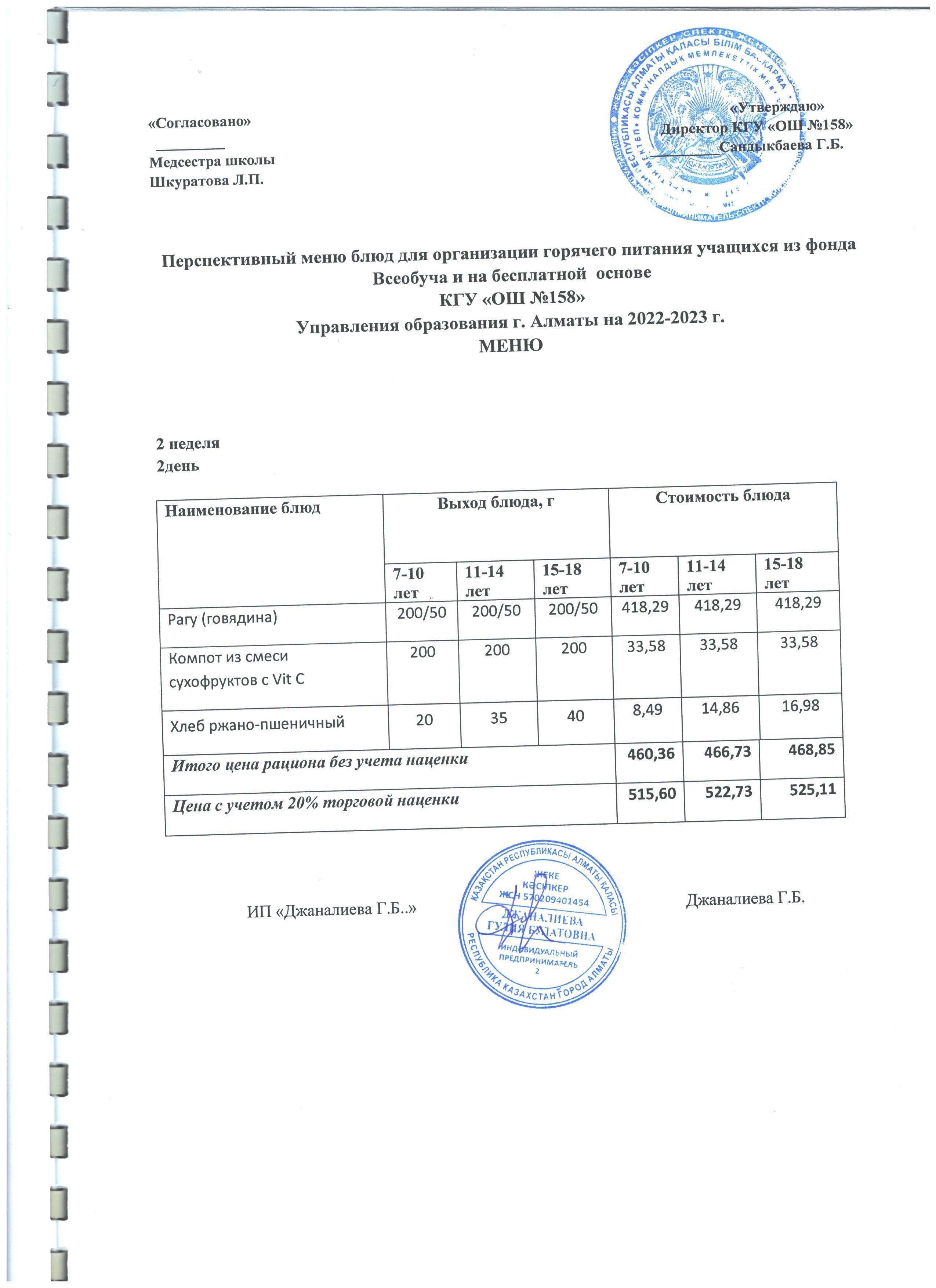 Ас мәзірі 2 апта 5 күн (09.09.2022ж.)