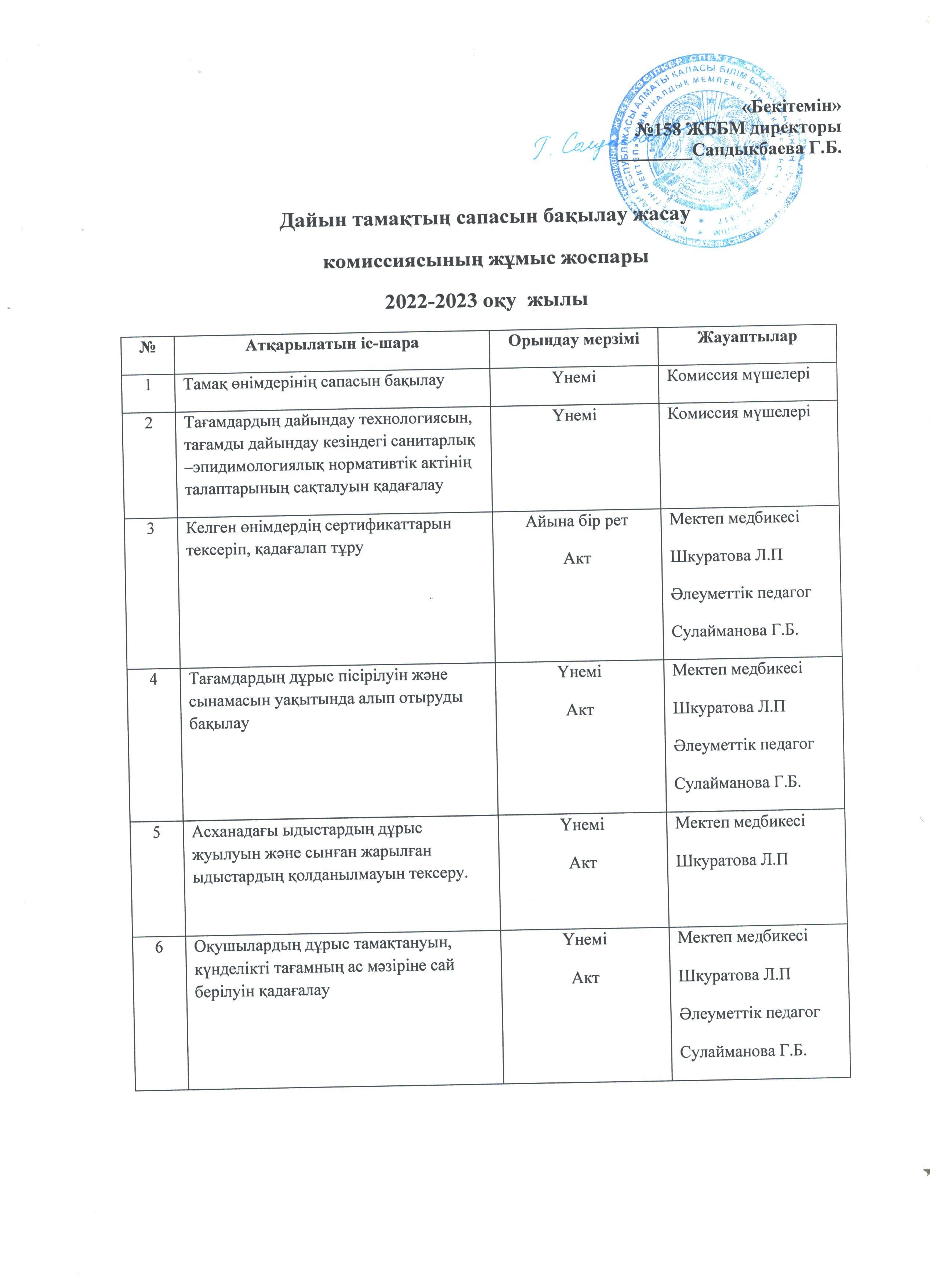 15 қыркүйек 2022 0 1 2 3 4 5 Дайын тамақтың сапасын бақылау жасау комиссиясының жұмыс жоспары Осы беттің QR-коды:QR-код этой страницы: