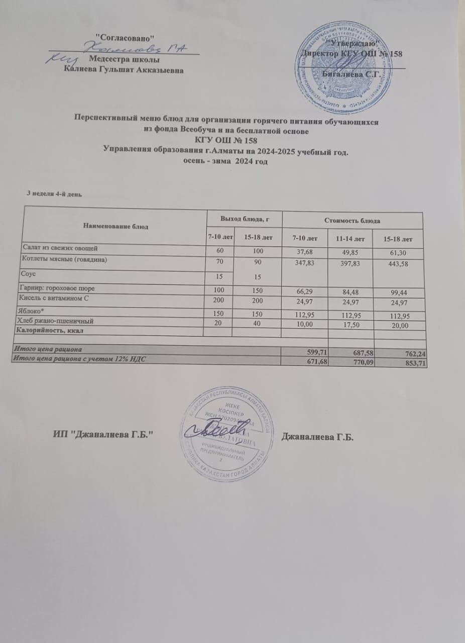 Ас мәзірі 20.01.2025