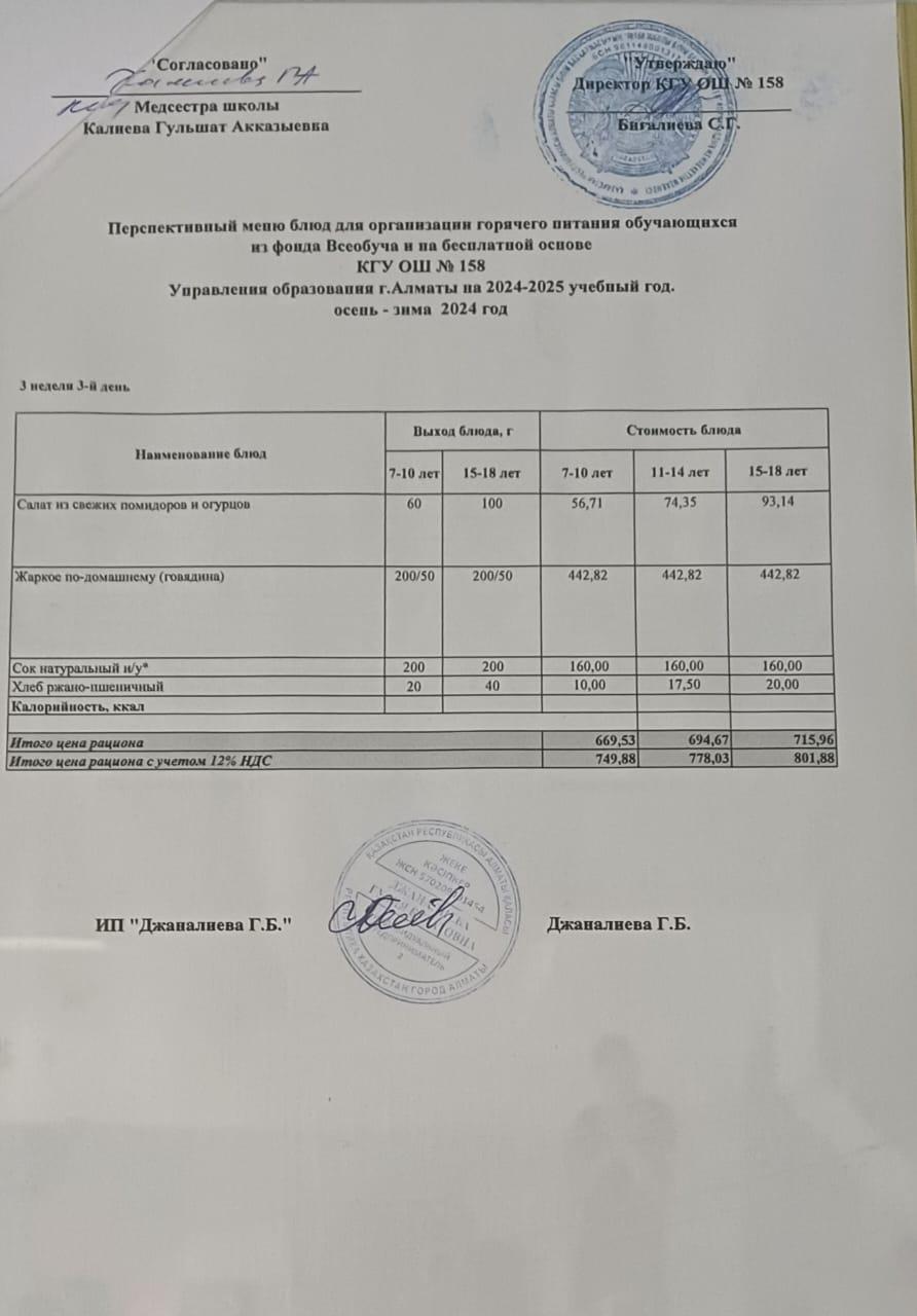 КГУ «Общеобразовательная школа № 158» Управления образования г.Алматы