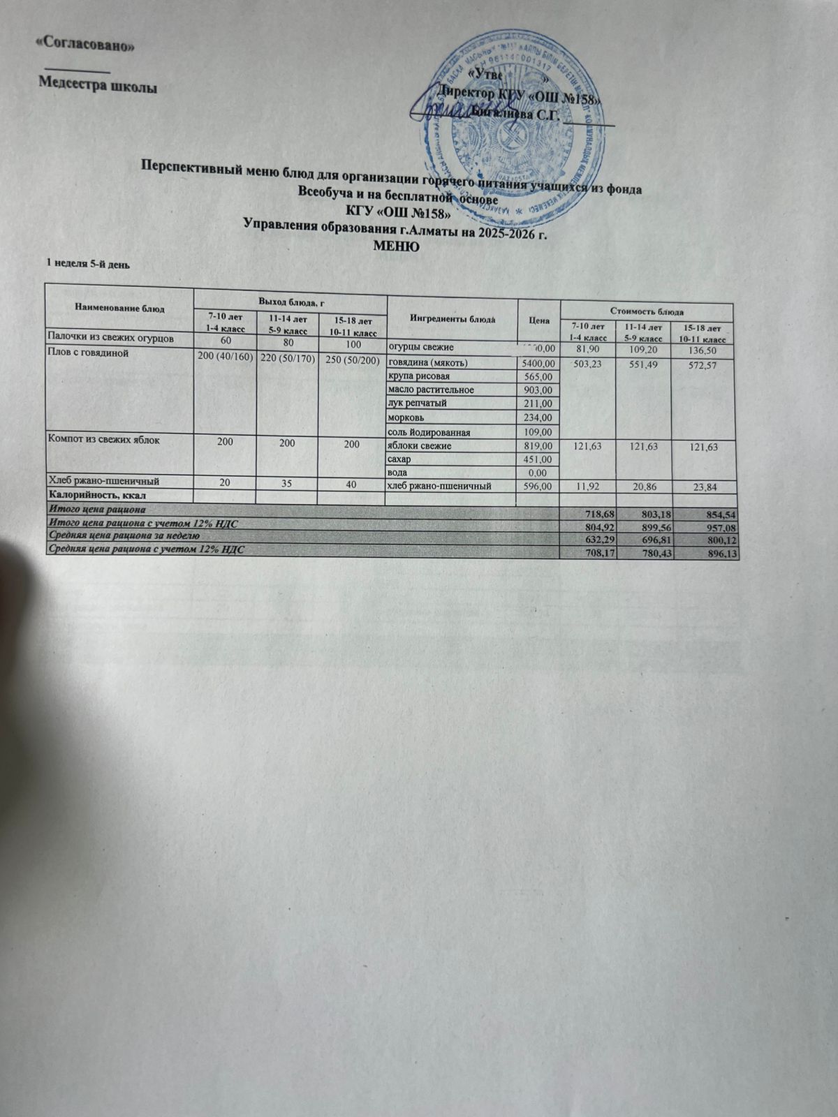 КГУ «Общеобразовательная школа № 158» Управления образования г.Алматы