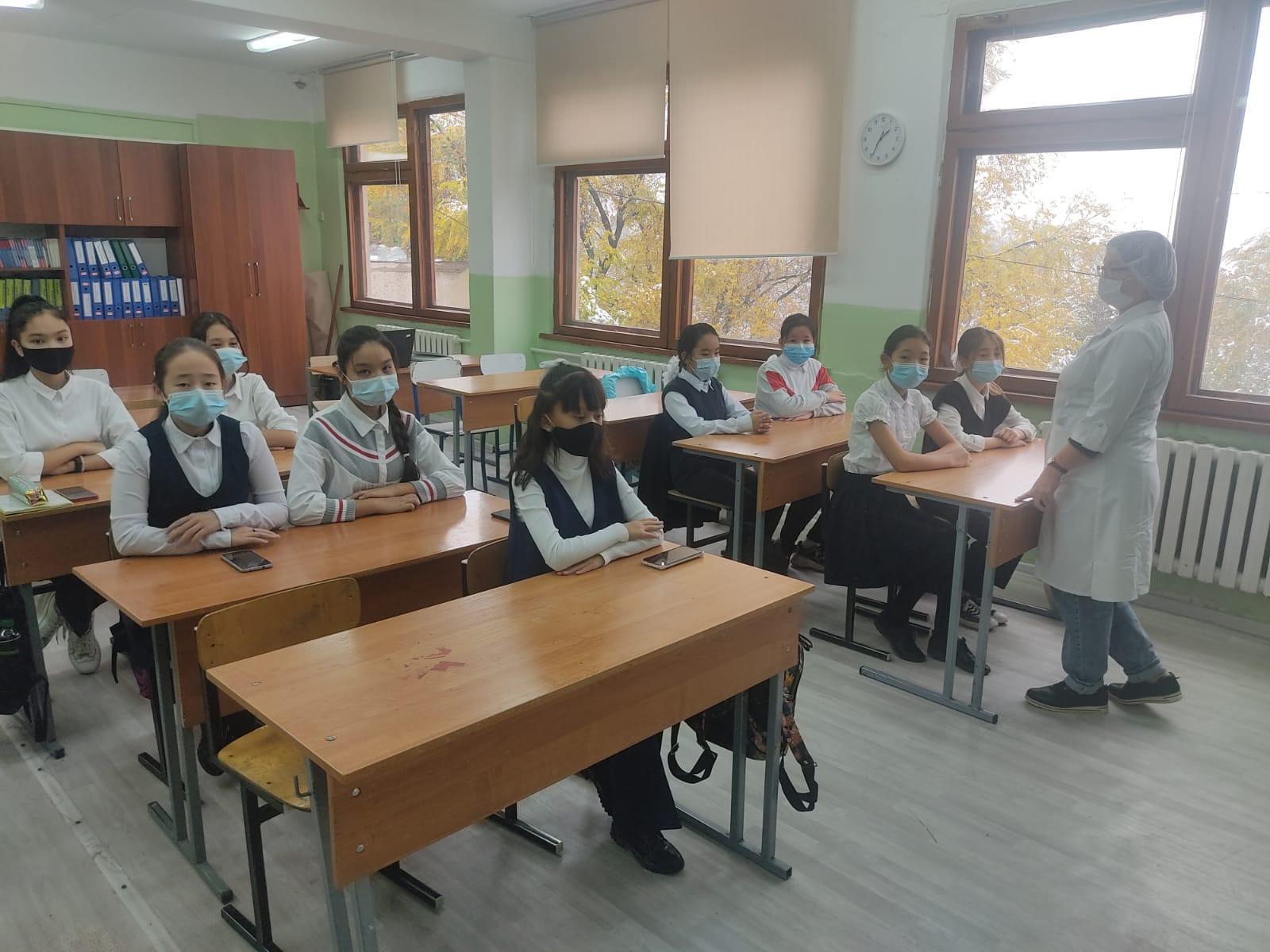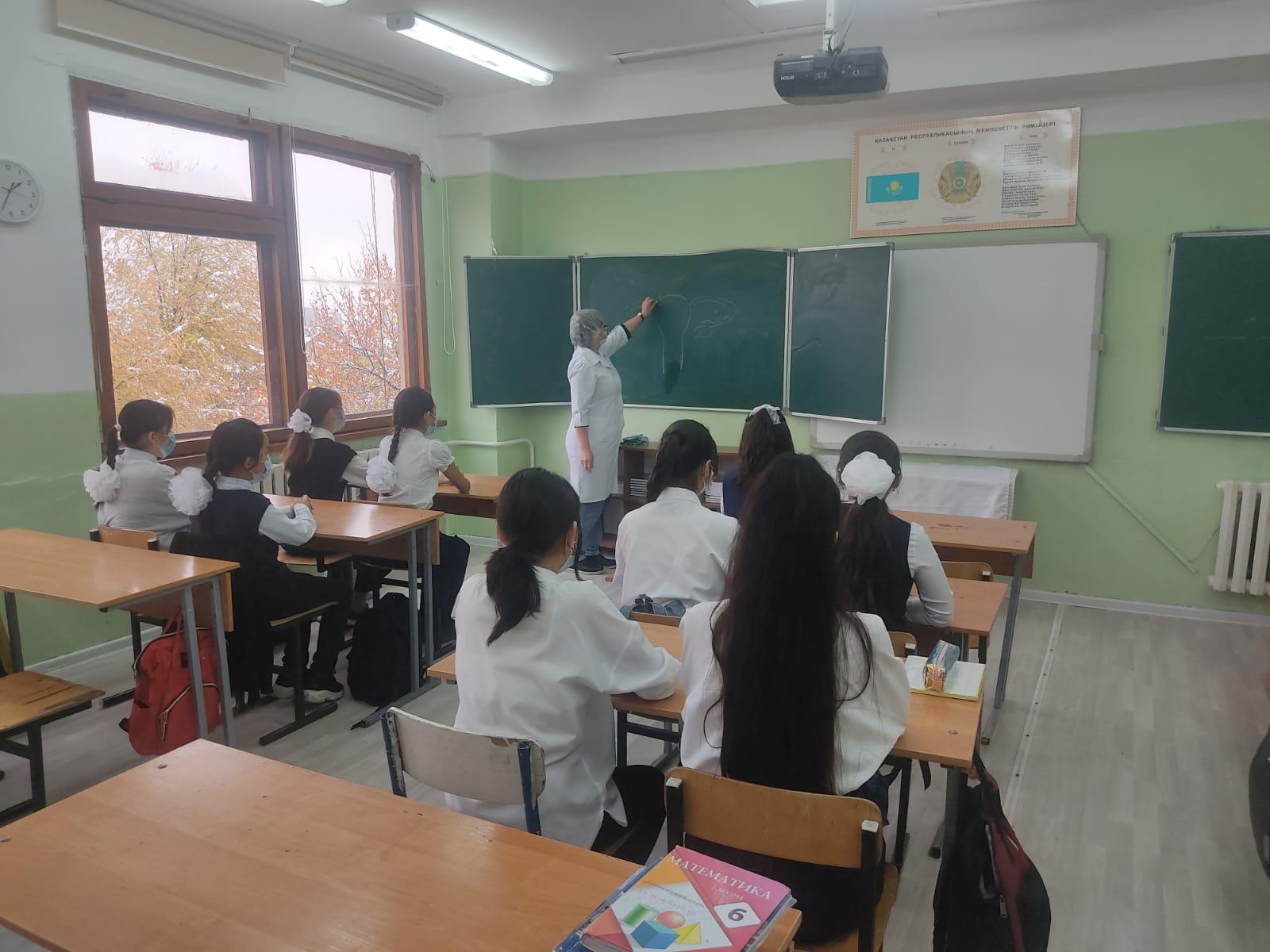 22 қазан күні мектебіміздің медбикесі Гулшат Аққазы қызының қатысуымен 6 д сынып қыздарының арасында "Жасөспірім қыздардың бойында болып жатқан өзгерістер. Жалпы гигиена" тақырыбында кездесу болып өтті. Қыздар өздерінің сұрақтарын қойып, оған тұшымды жауап ала алды.